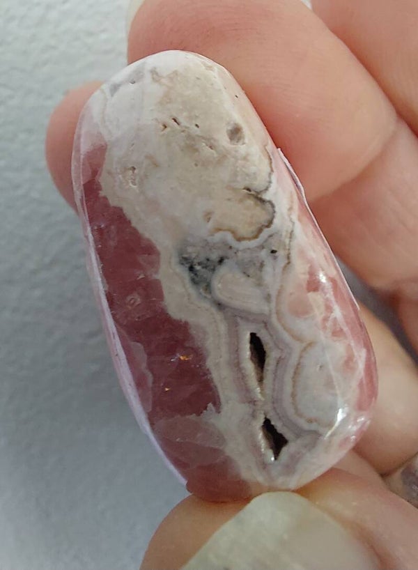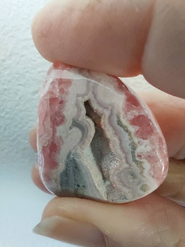 Werking: Rhodochrosiet staat voor liefde en spontaniteit. De steen heeft een activerende werking en brengt harmonie en mildheid. Rhodochrosiet helpt bij het openstellen voor de liefde en heft blokkades in de aura op.