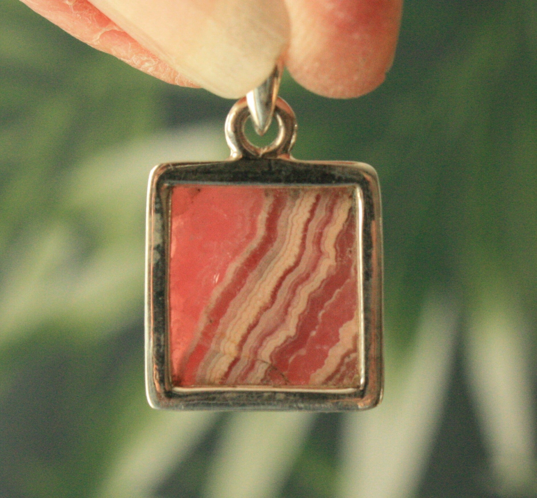 Zilveren rhodochrosiet hangertje.