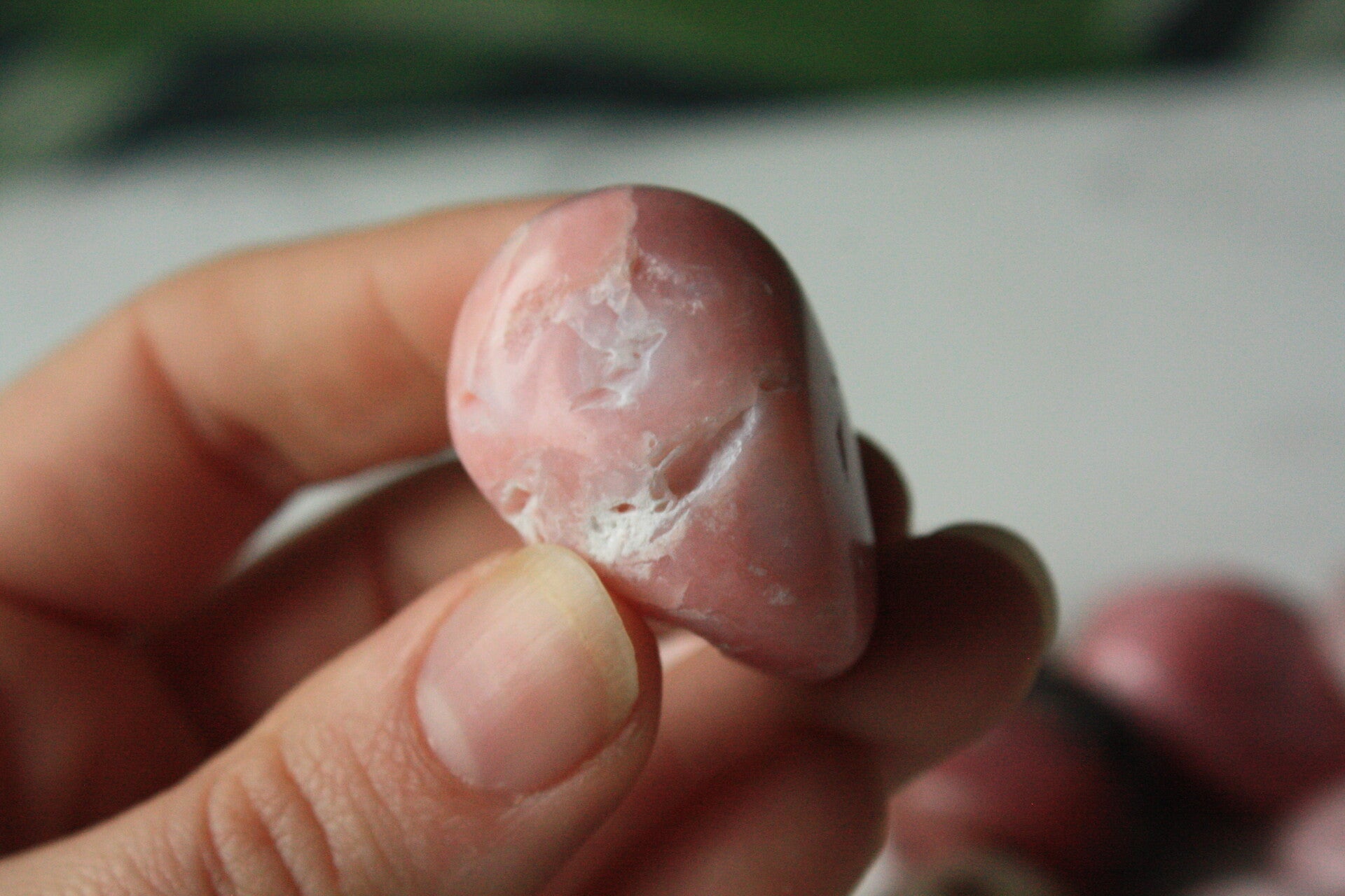 Roze opaal trommelsteen uit China.