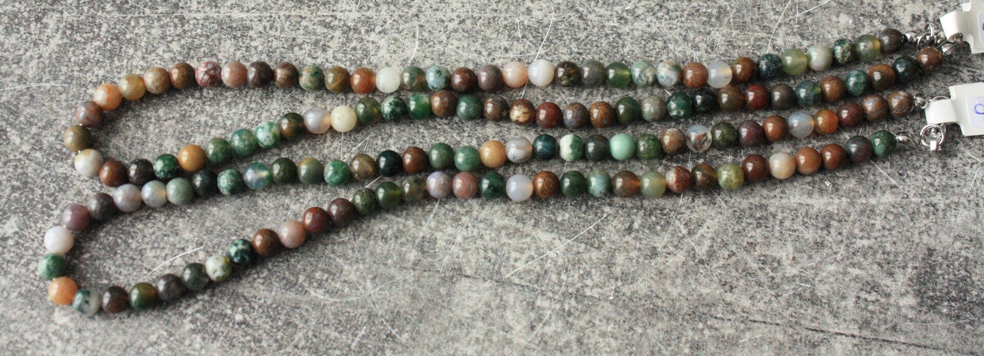Agaat kralen ketting, 6 mm kraal en zilverkleurige sluiting.