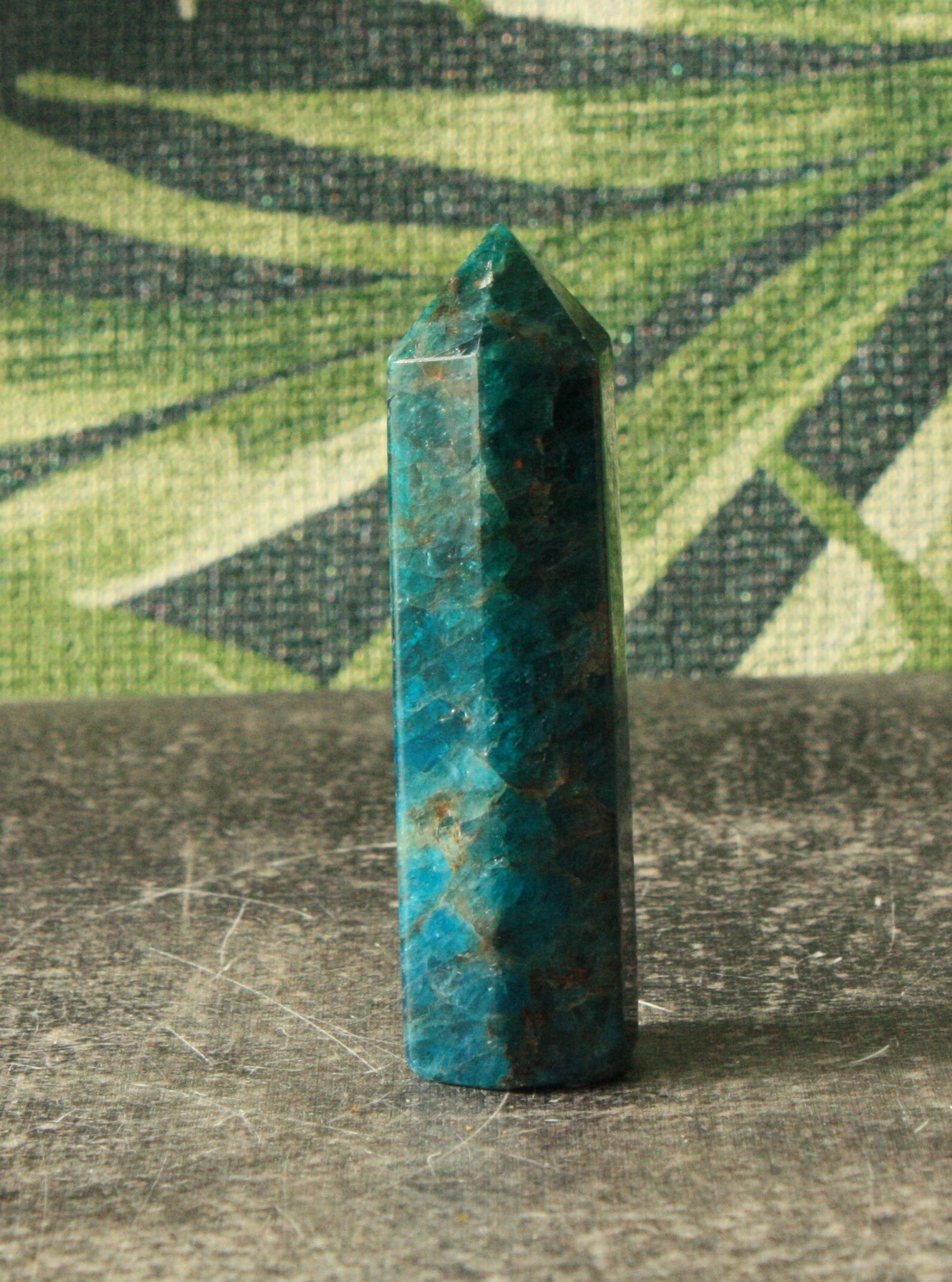 Werking: Apatiet staat voor communicatie & groei. De steen heeft een activerende en vitaliserende werking en bevordert zelfexpressie. Het maakt open, sociaal en extravert.