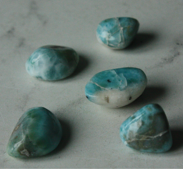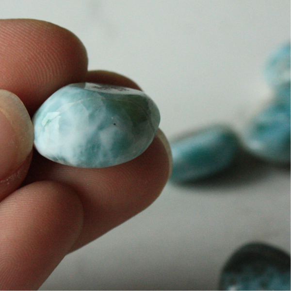 Larimar trommelsteen uit de Dominicaanse Republiek.