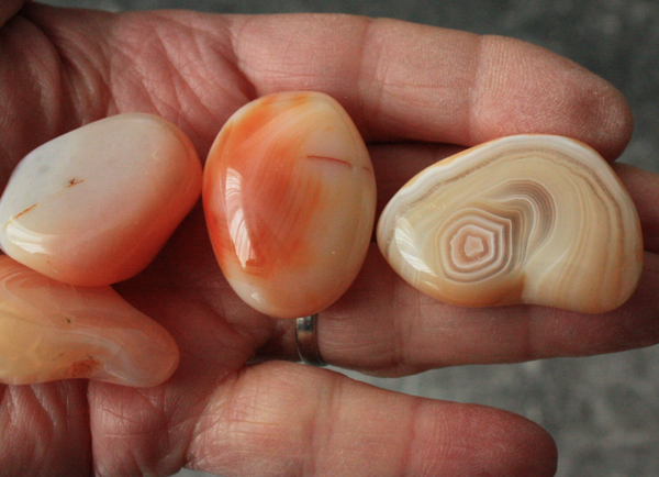 Abrikoos agaat trommelsteen uit Zuid-Afrika (maat M).