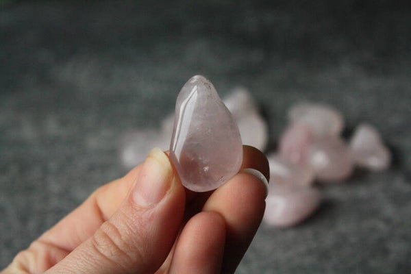 Rozenkwarts trommelsteen uit Madagascar.
