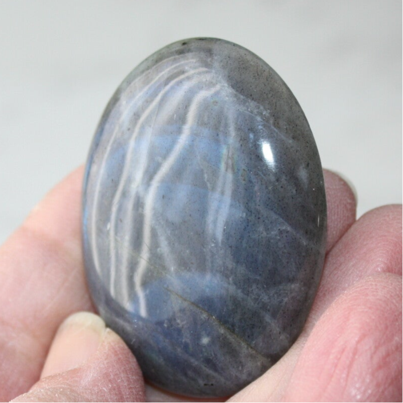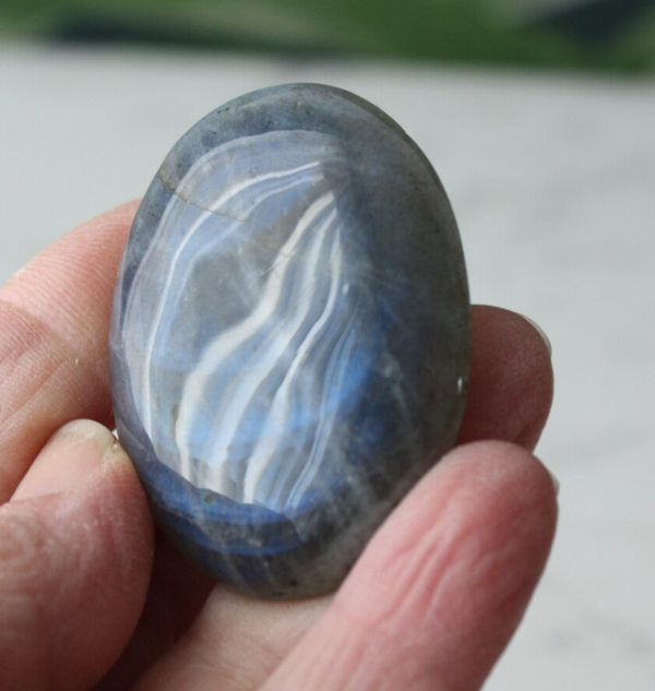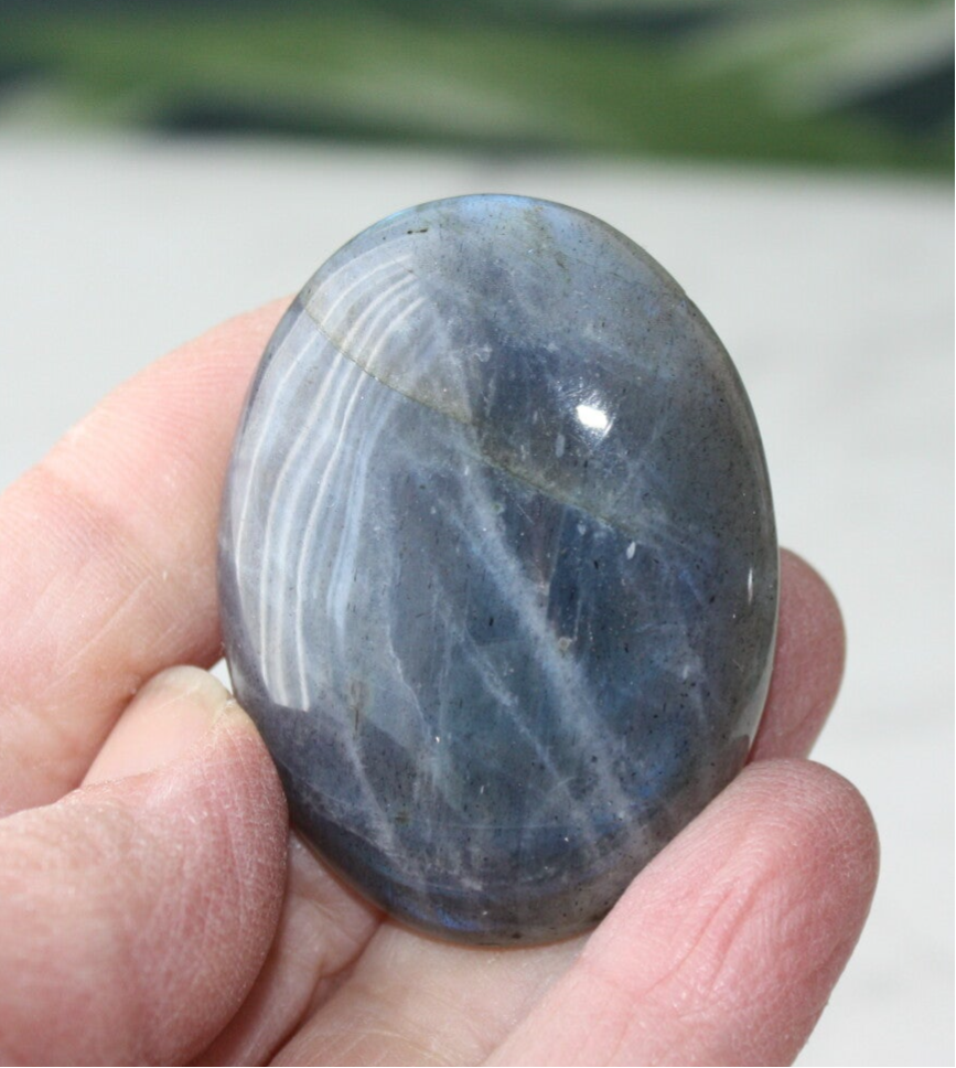Labradoriet cabochon uit Madagascar, met blauwe flash.