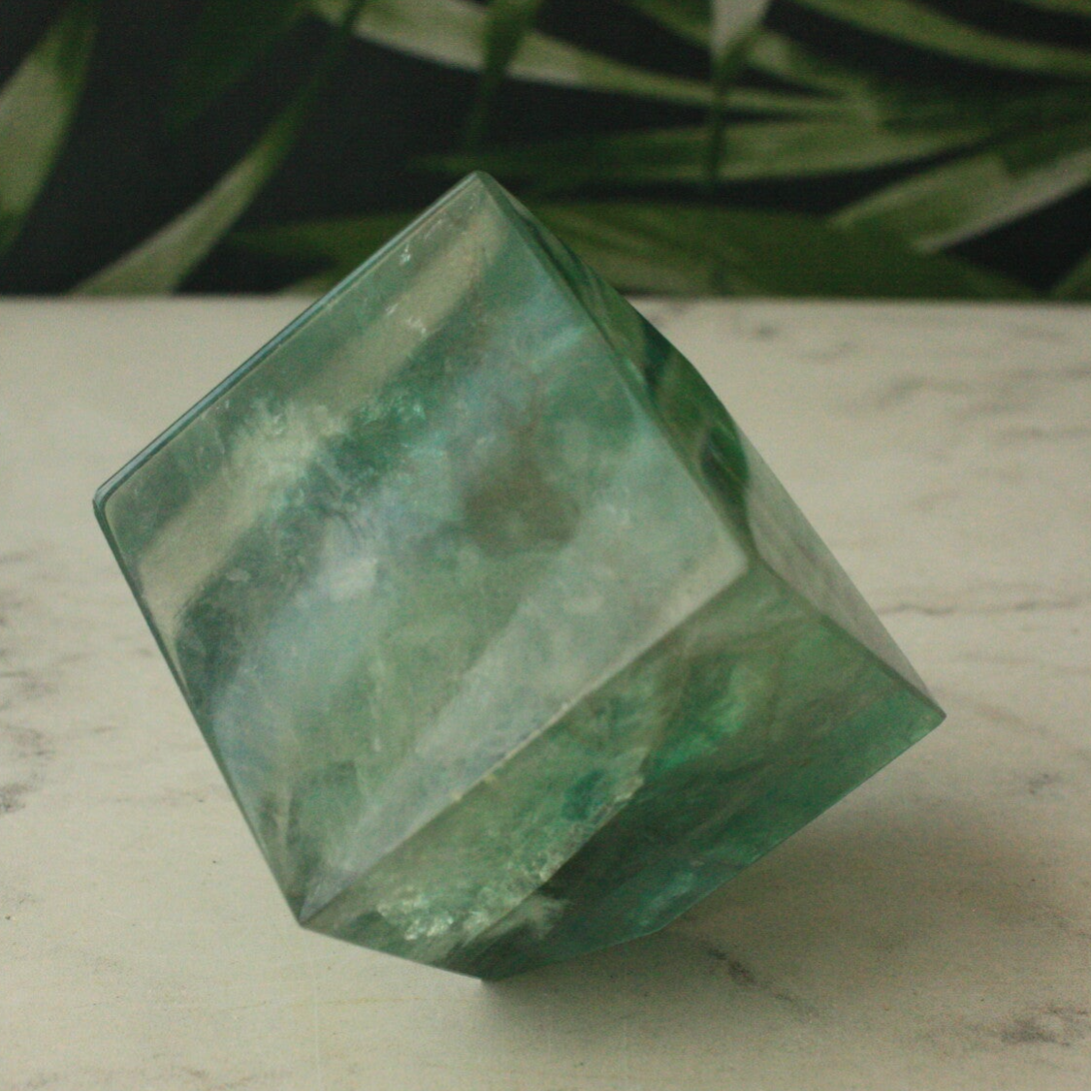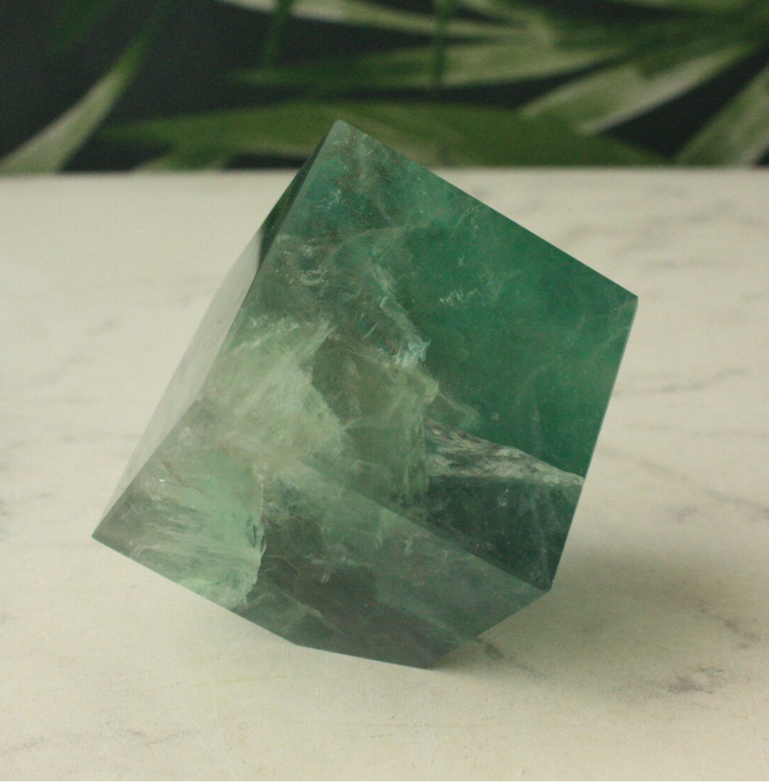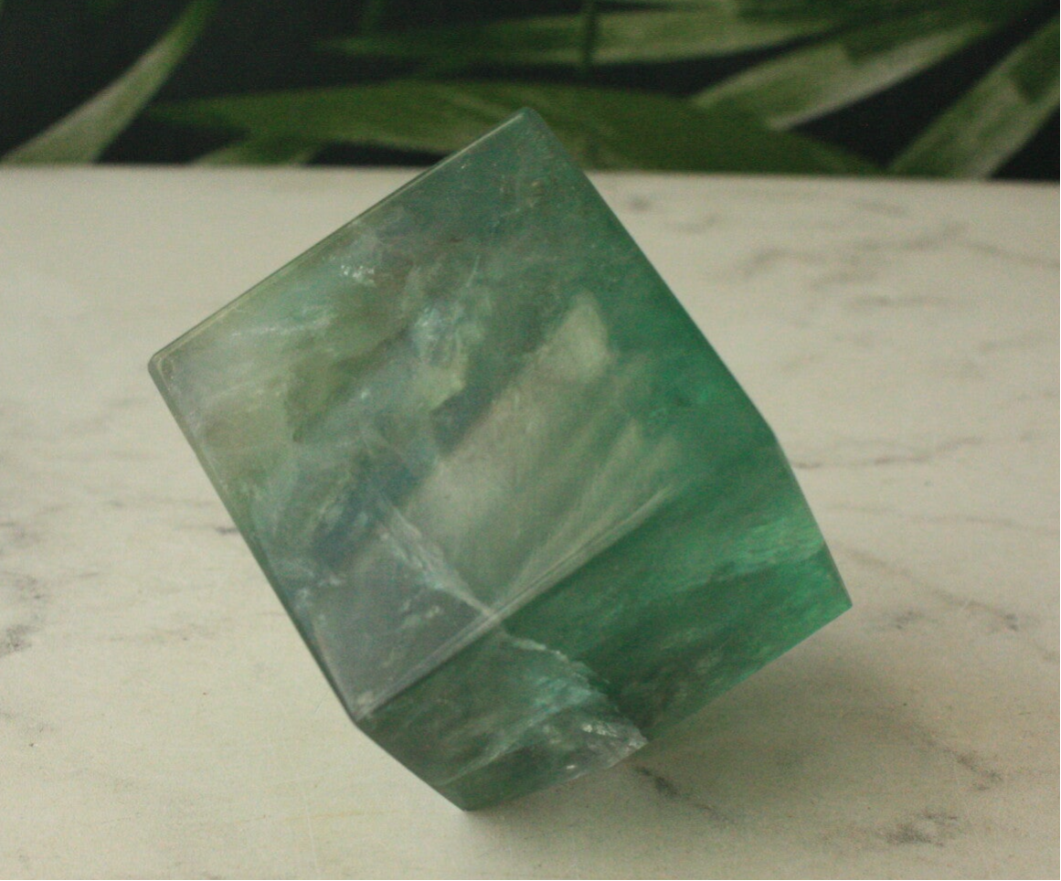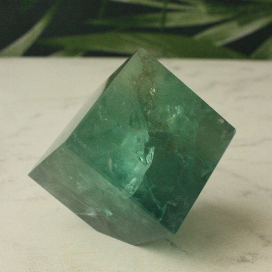 Groene fluoriet kubus uit China.