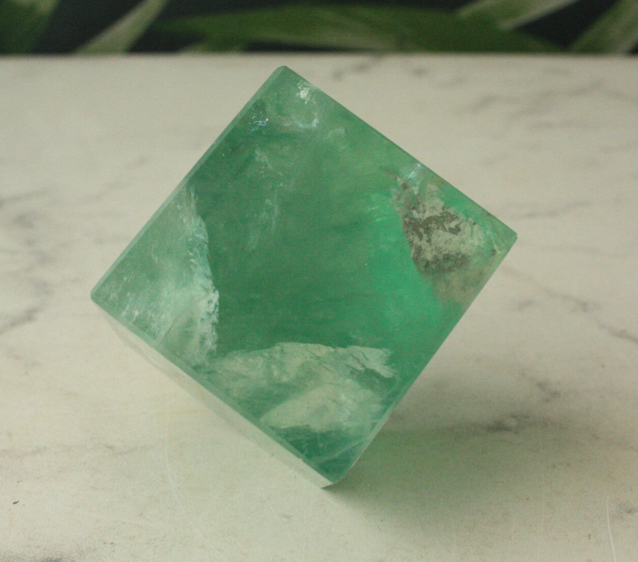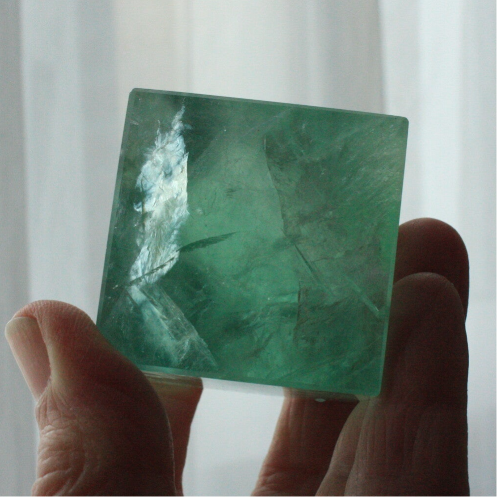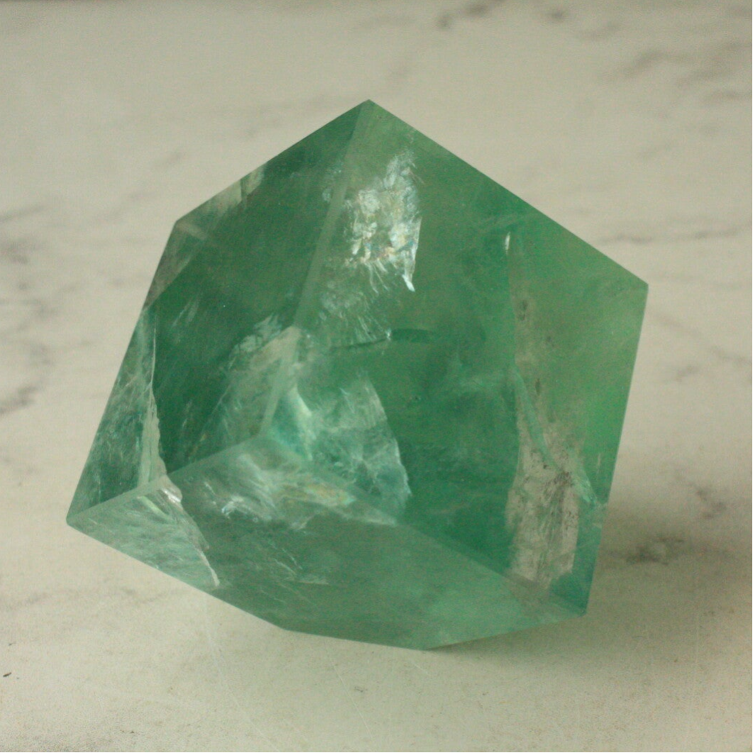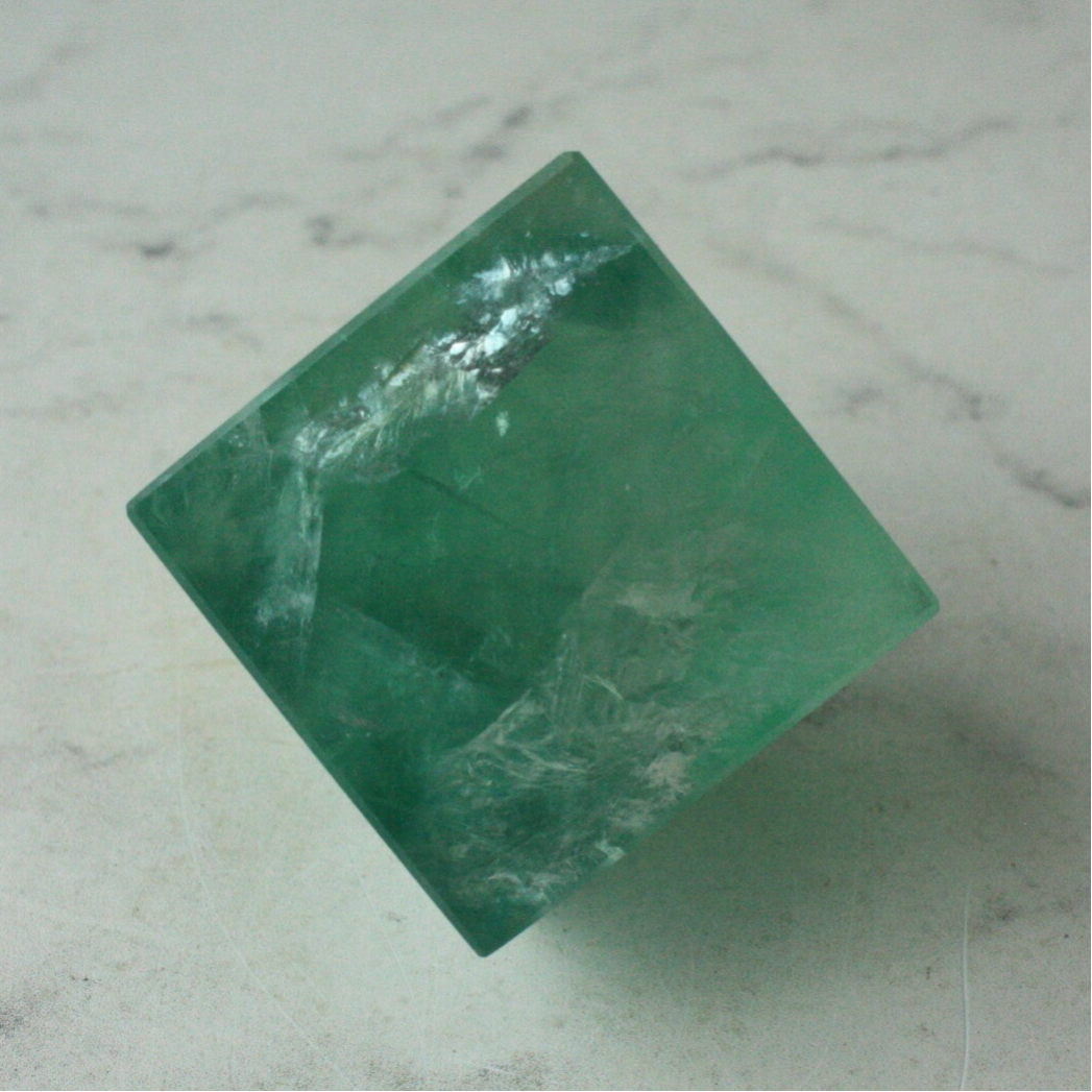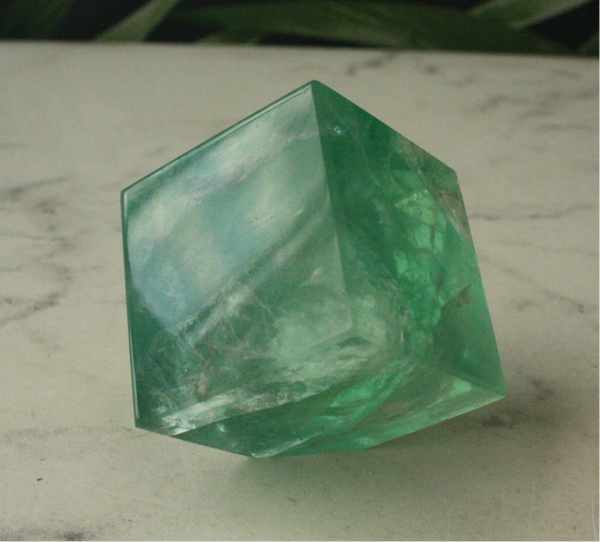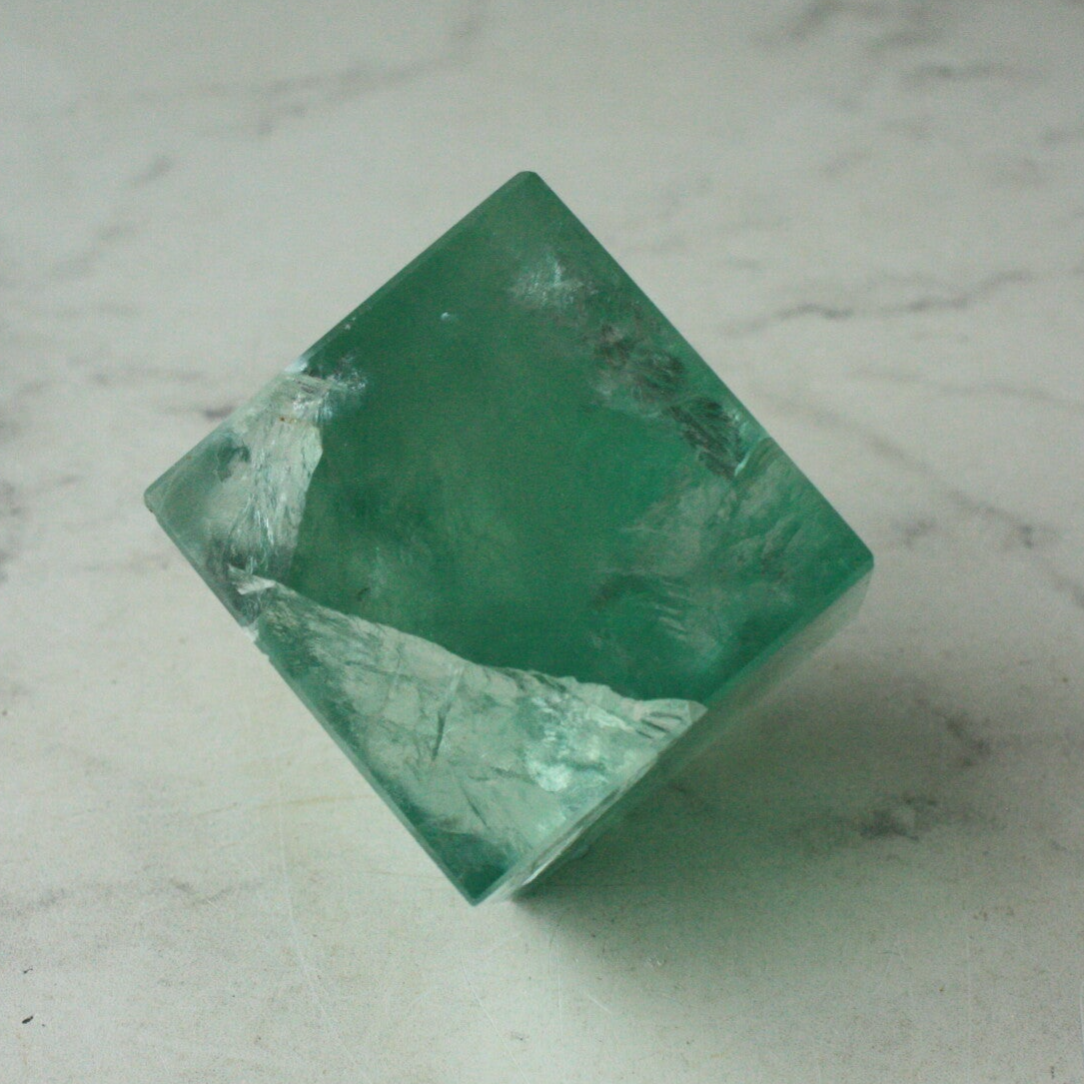 Groene fluoriet kubus uit China.
