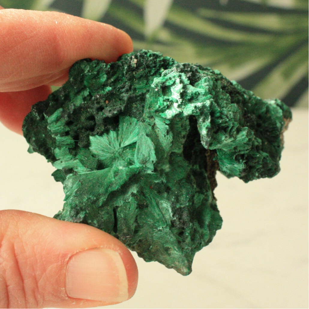 Werking: Malachiet is een steen die voor weerbaarheid en balans staat. De zuiverende steen beschermt sterk tegen straling en negatieve energieën. Malachiet bevordert het concentratievermogen en vermindert angsten. Daarnaast heeft malachiet, door de hoeveelheid van aanwezige koper, een ontstekingsremmende werking.