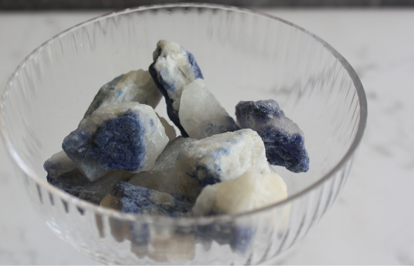 Ruw stukje dumortieriet in kwarts uit Brazilië.