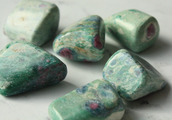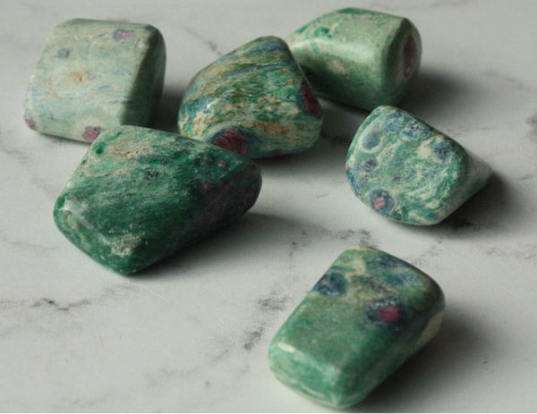 Robijn in fuchsiet trommelsteen.